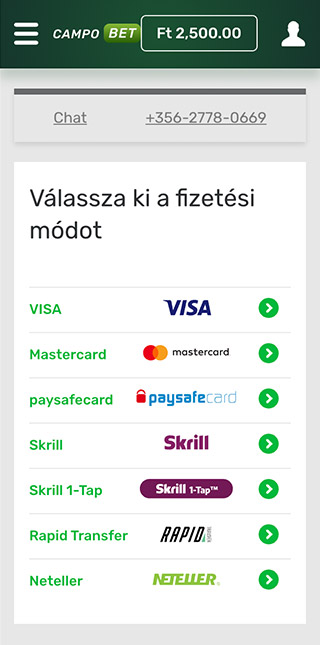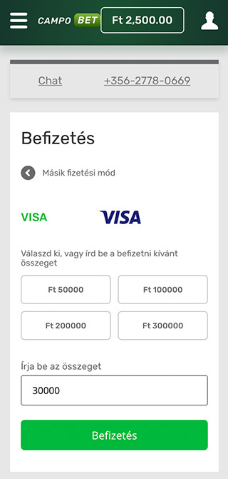 Függetlenül attól, hogy a CampoBet Kaszinó melyik oldalán tartózkodsz, bármikor ellenőrizheted egyenleged állapotát a képernyő jobb felső sarkában megjelenő megfelelő jelre kattintva. A rendszer egy másik oldalra vezet át, ahol a pénzügyeiddel kapcsolatos adatok találhatók. Itt mindenféle pénzügyletet hajthatsz végre, beleértve a be- és a kifizetéseket is.